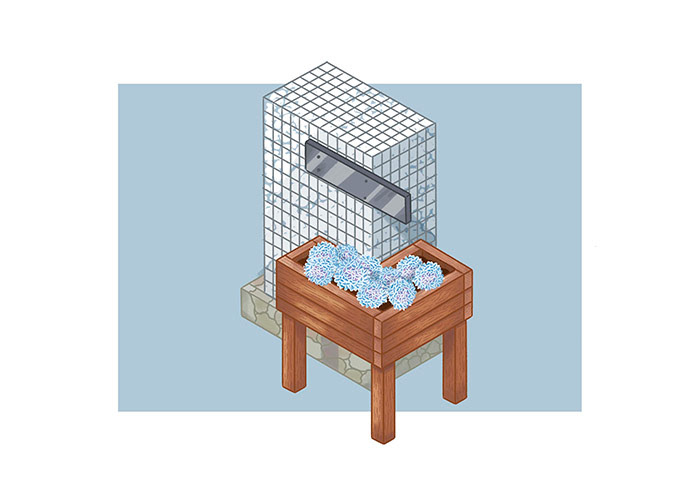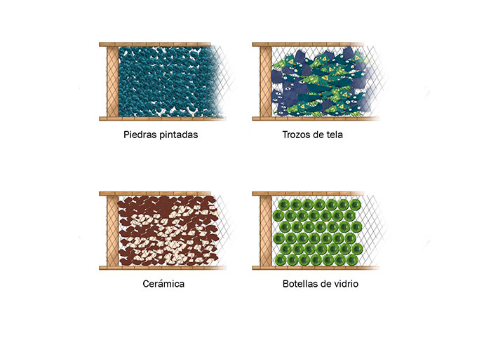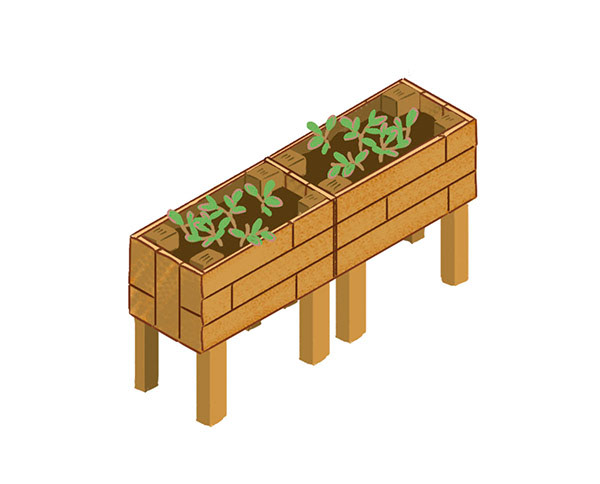 Varios concept arts de mobiliario de madera reciclada.